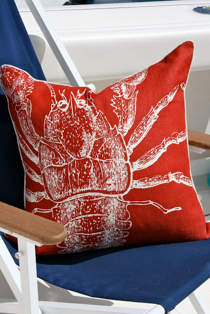 I love your blog! I don't know if I like your home, your vacation home, or your boat better, actually love them all! The blue crab pillow would be perfect for our San Diego place, it just says "summer"...